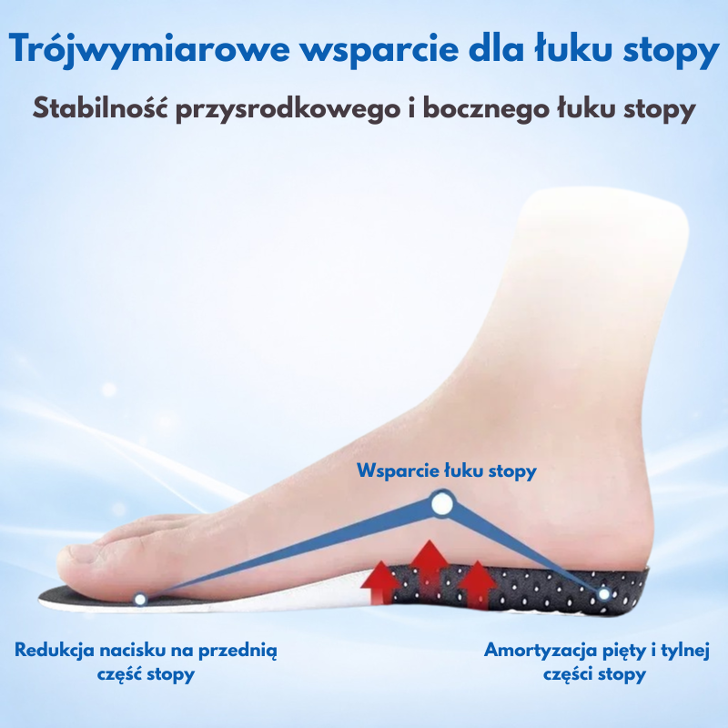 Tak oferują wsparcie łuku podłużnego stopy, co pomaga utrzymać jej prawidłowe ułożenie i zmniejszać nadmierne zapadanie się stopy charakterystyczne dla płaskostopia.